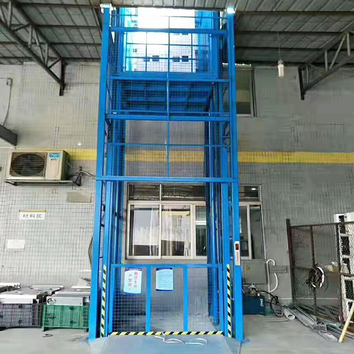 导轨式升降货梯是用于货物升降的液压升降机械设备,采用液压油缸作为主要动力,通过重型链条和钢丝绳传动,保证机器运行的安全。无需地坑和机房,适合于有地下室、仓库改造、新建货架等,具有安装维修方便、美观、安全、操作方便。